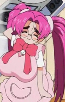 The pink-haired Komoe is the youngest member (6th grader) of the Eiken Club aside from Kuma, but also the most well-endowed, with an 111 cm bustline. Komoe is very clumsy, but always striving to do her best. Her clumsy mistakes often leave her exposed, and she has a habit of accidentally hurting and squashing Densuke with her breasts when falling on him.