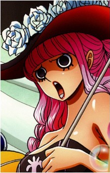 Nicknamed the “Ghost Princess”, Perona is a girl dressed in Gothic Lolita style and a commander in the army of Gecko Moria on his island-ship of Thriller Bark. She is also the commander of Perona Wonder Garden, where an army of animal zombies live and protect her. She looted the Thousand Sunny with some zombies and later took on guard duty while Absalom was away attempting to marry Nami. She cannot stand anything that she feels is not cute, such as insects.