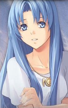 Feena is a mysterious amnesiac blue-haired girl who is locked away underneath the Shrine of Solomon, until Adol comes along to rescue her.